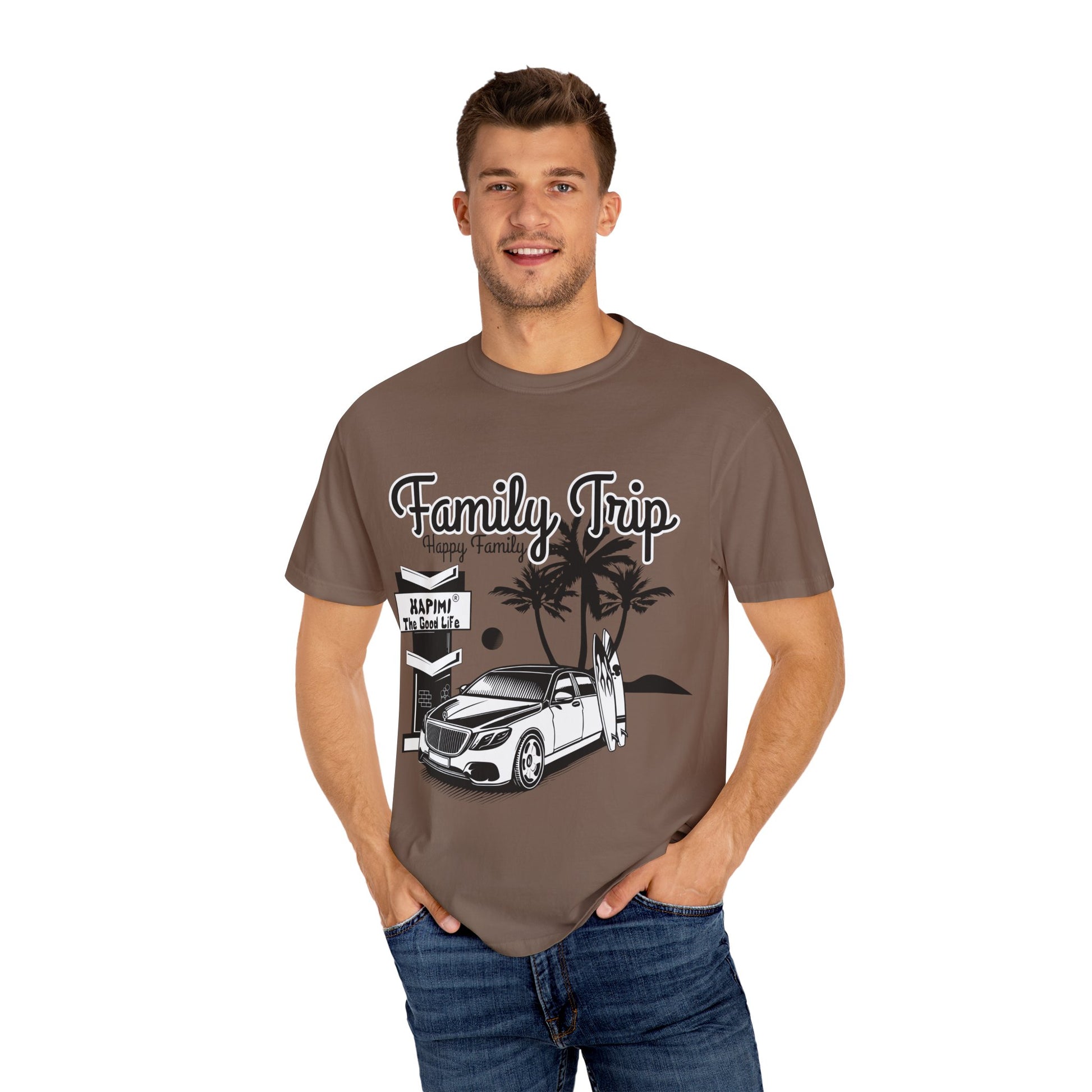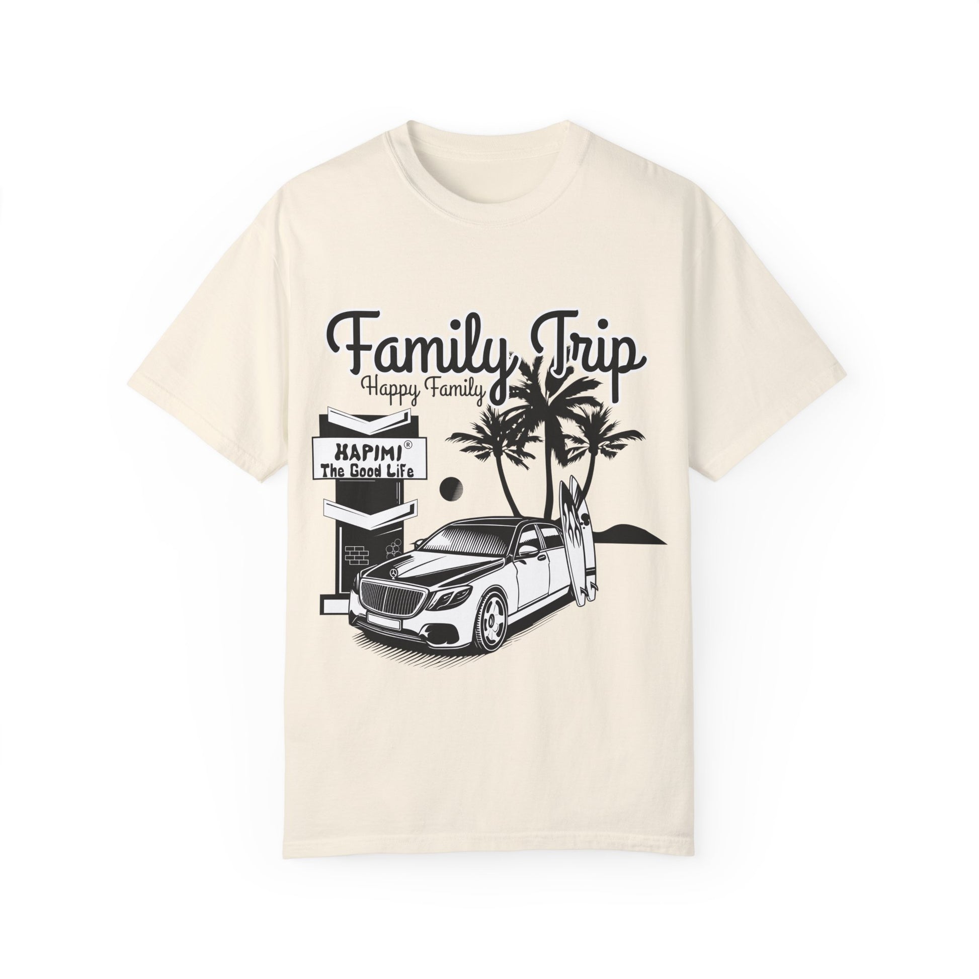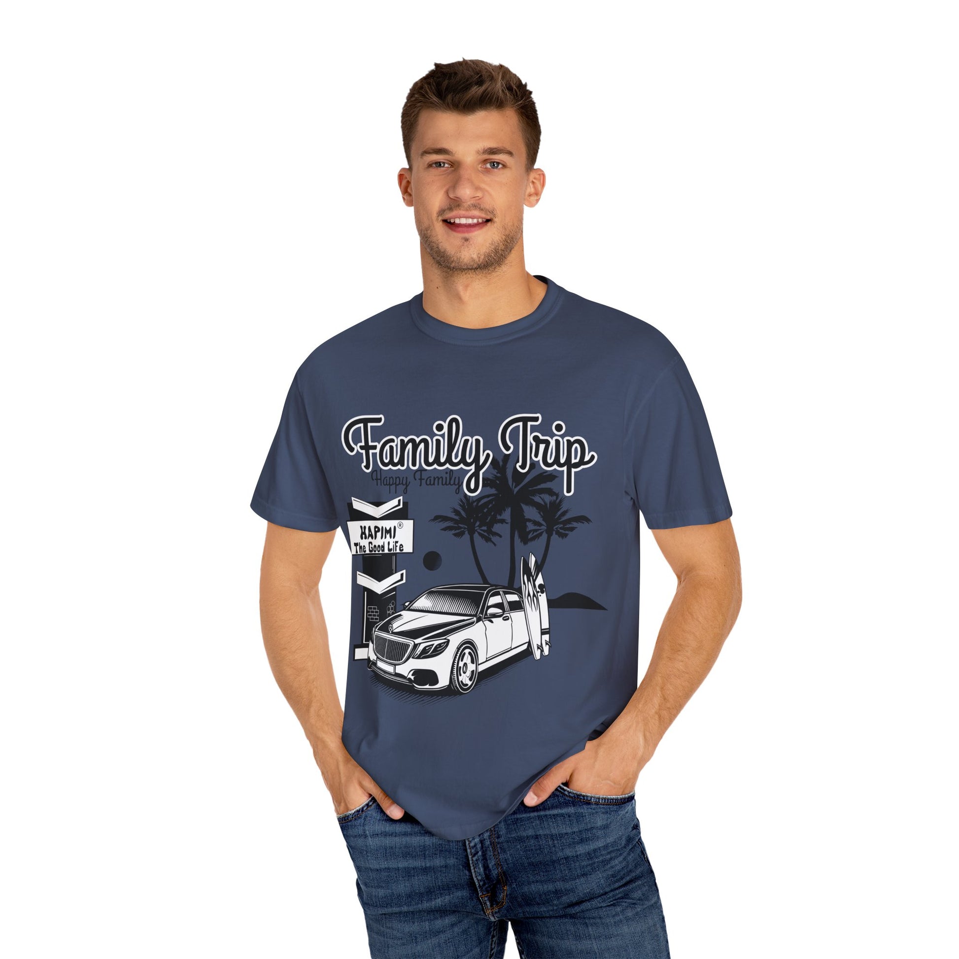 Add premium comfort and versatility to your wardrobe with the HAPIMI Family Trip T-shirt. Made from 100% ring-spun US cotton, this tee offers a soft-washed, garment-dyed finish for an ultra-cozy feel that lasts. Its relaxed fit and durable construction make it a top choice for both casual and semi-formal settings.